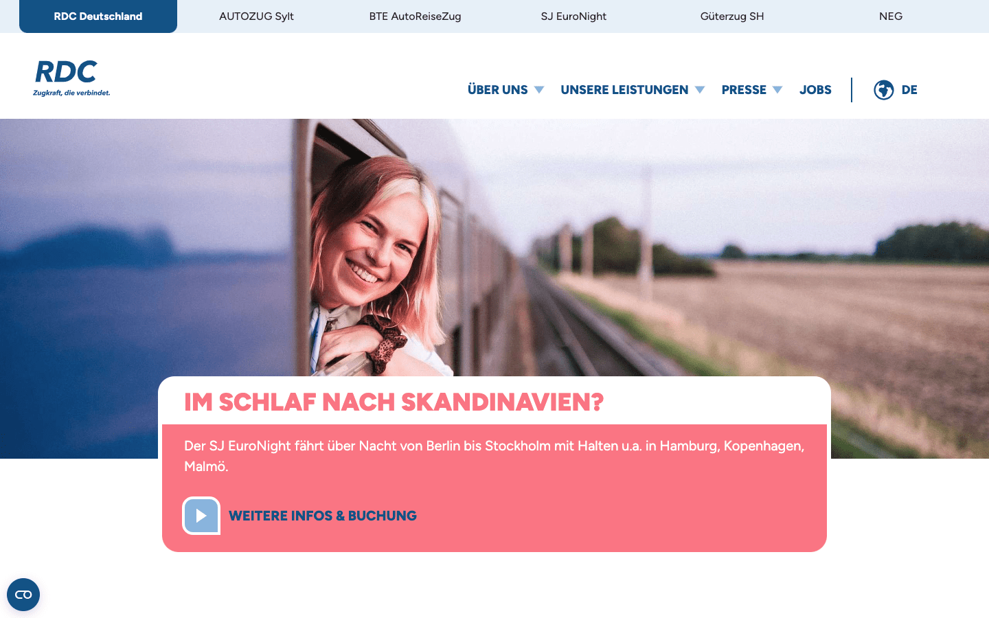 Ein zentrales Projektziel war die Integration aller relevanten Teilbereiche der RDC Deutschland. Entsprechend wurden und werden die Portale des blauen AUTOZUG Sylt, des BTE AutoReiseZugs, des internationalen Nachtzuges SJ EuroNight sowie der Norddeutschen Eisenbahn Niebüll in eine zentrale CMS-Umgebung eingebunden.